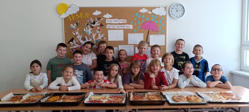 U utorak, 14. listopada, u našoj područnoj školi u Šušnjevcima obilježili smo Dane kruha i zahvalnosti za plodove zemlje. Odmah po dolasku u školu, na samom početku nastave, zajedno sa svojim učiteljicama zamijesili smo veću količinu tijesta. Naučili smo, a neki su ponovili, od čega se pravi tijesto. Sve sastojke smo dobro umijesili u tijesto koje smo ostavili da se digne kraj tople peći. Dok se tijesto dizalo učili smo o Danima kruha iz Prirode i društva, čitali tekstove i prepričavali priču prema nizu slika iz Hrvatkog jezika, oblikovali pekarske proizvode od plastelina na satu Likovne kulture… Kada se tijesto diglo svaki učenik dobio je malu količinu tijesta od koje je oblikovao pizzu koju je po želji punio sastojcima koje je svatko sebi donio od kuće. Nekoliko mama i baka nam je ispeklo pizze u pećnici. Škola je tako divno mirisala kada su stigle ispečene pizze. Zahvaljujemo se mamama i bakama što su nam pomogle ispeći naše pizze. Tako smo ih slasno pojeli i poželjeli da što češće u školi imamo ovakve dane.