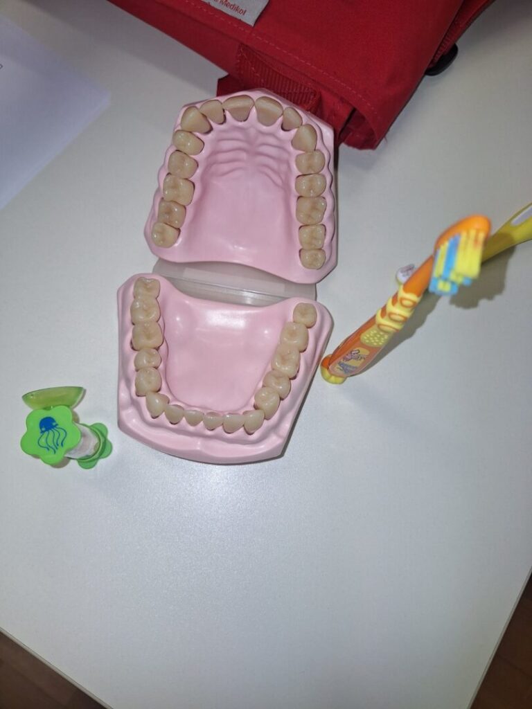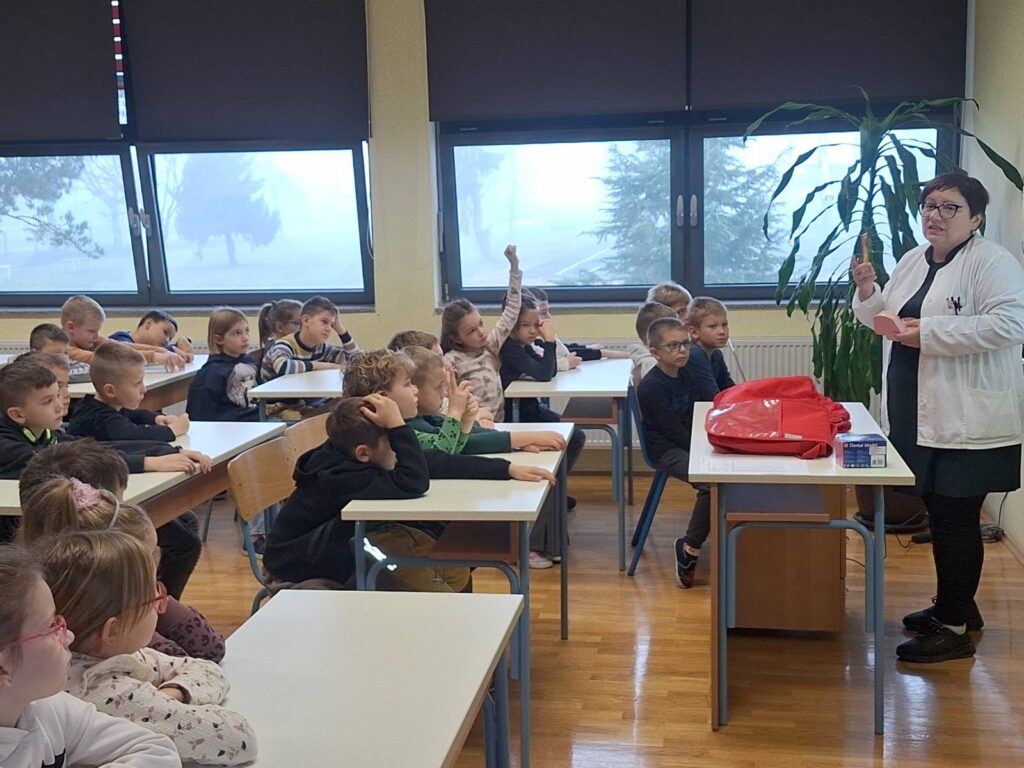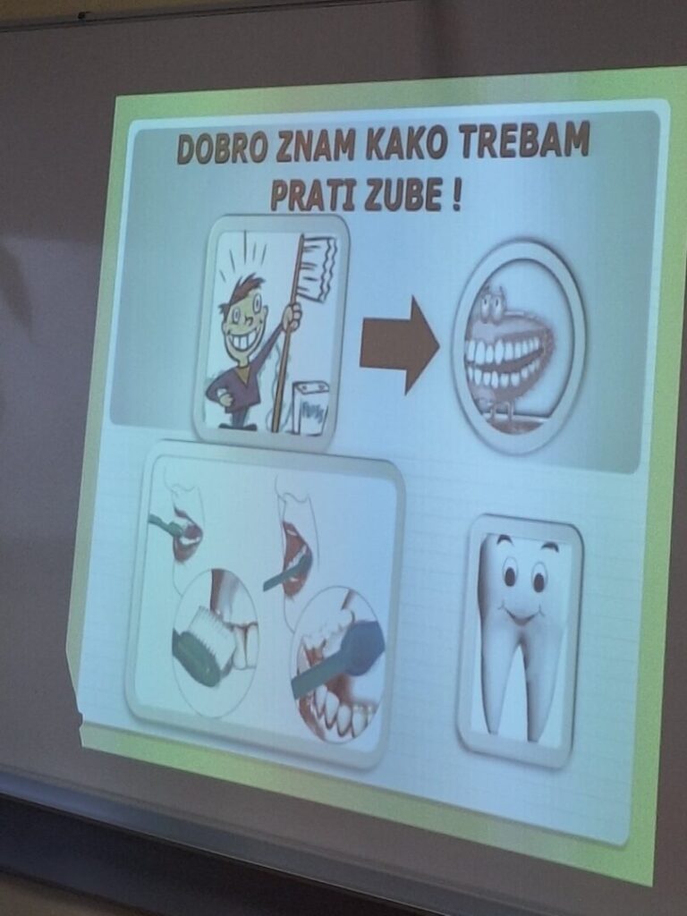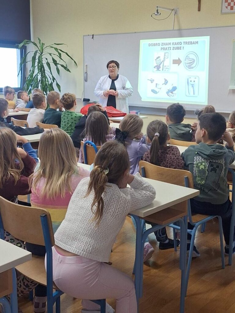 Dana 20.11.2025. održano je edukativno predavanje za učenike 1. razreda MŠ na temu pravilnog pranja zubi u suradnji sa Školskom medicinom Slavonski Brod. Cilj predavanja bio je upoznati učenike s važnosti oralne higijene te ih kroz praktičan prikaz naučiti pravilnoj tehnici četkanja zubi.Predavanje je započelo kratkim razgovorom o tome zašto je važno prati zube te što se događa ako se zubi ne održavaju redovito. Učenici su naveli svoja iskustva i pokazali dobro predznanje o osnovnoj higijeni.Nakon uvodnog dijela, demonstrirano je pravilno pranje zubi pomoću velikog edukativnog modela zubala i četkice. Korištena je metoda „četkaj odozgo prema dolje“ za vanjske plohe, „kružnim pokretima“ za prednje zube te „naprijed–natrag“ za žvačne plohe. Poseban naglasak stavljen je na četkanje unutarnjih ploha i važnost temeljitosti.Učenici su potom imali priliku aktivno sudjelovati, postavljati pitanja .Aktivnost je kod djece izazvala interes.Učenici su naučili da;Zube treba prati dvaput dnevno, ujutro i prije spavanja.Četkanje treba trajati najmanje dvije minute.Potrebno je prati sve plohe zuba: vanjske, unutarnje i žvačne.Važno je redovito mijenjati četkicu za zube (svaka 2–3 mjeseca).Preporučeno je ograničiti unos slatkiša i zaslađenih sokova.Predavanje je ostvarilo svoj cilj – približiti važnost oralne higijene na razumljiv i praktičan način