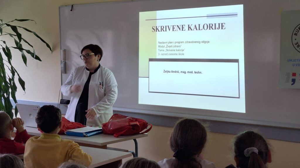 Kroz predavanje su saznali u kojim se namirnicama najčešće skrivaju kalorije. Poseban naglasak bio je na hrani koju djeca često konzumiraju, poput slatkiša, gaziranih i zaslađenih pića, pekarskih proizvoda, grickalica te gotovih i prerađenih jela. Učenici su naučili da neke namirnice mogu izgledati zdravo, ali ipak sadržavati puno skrivenih šećera i masti.