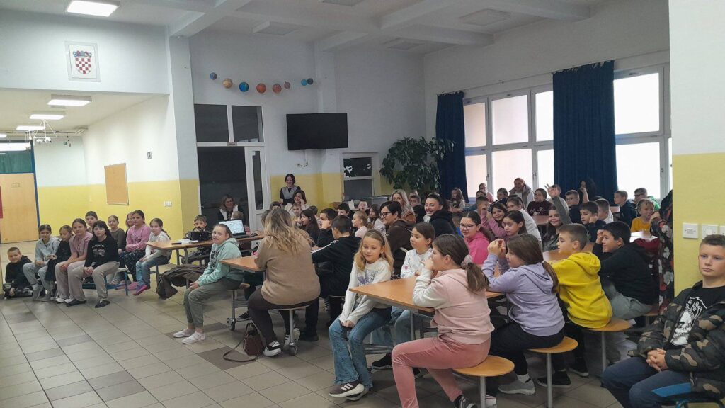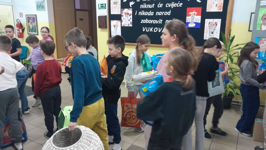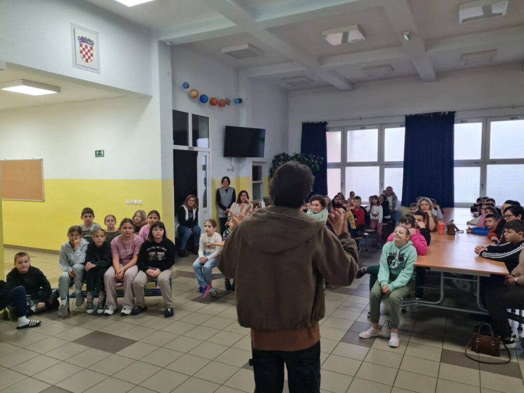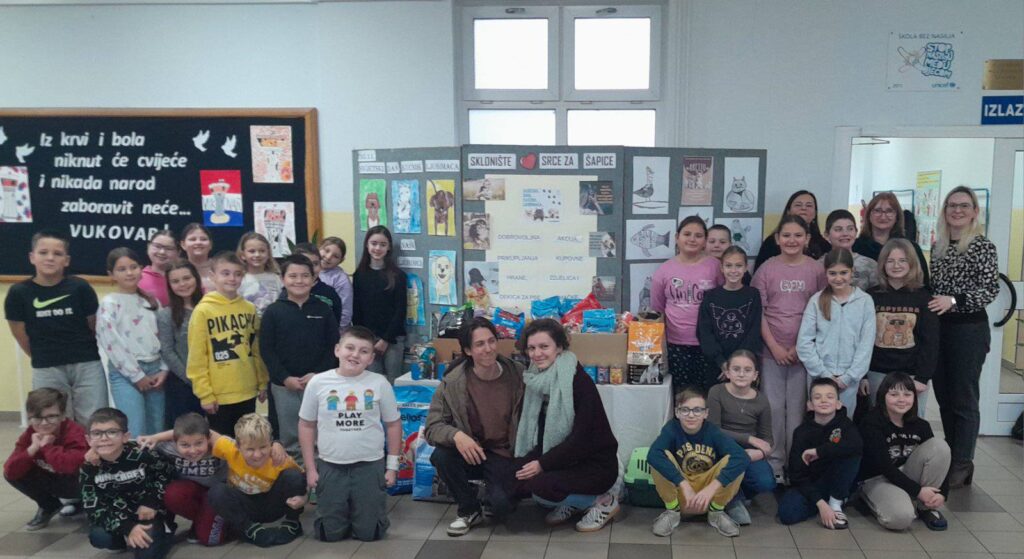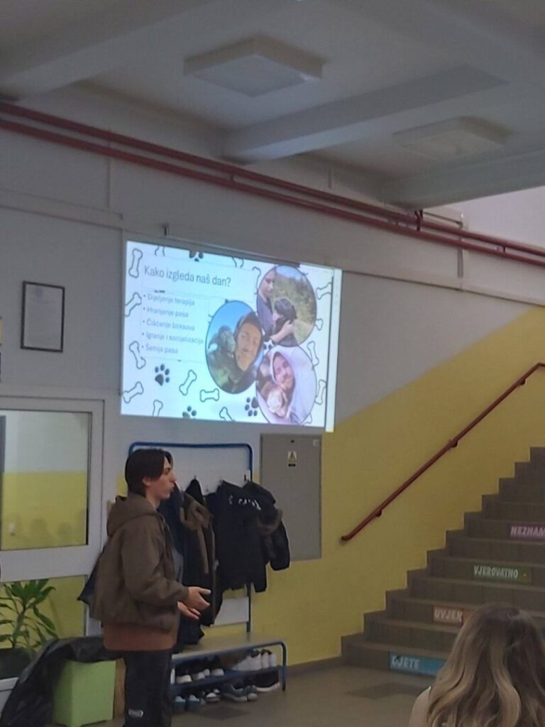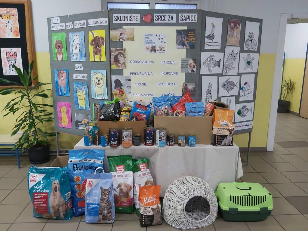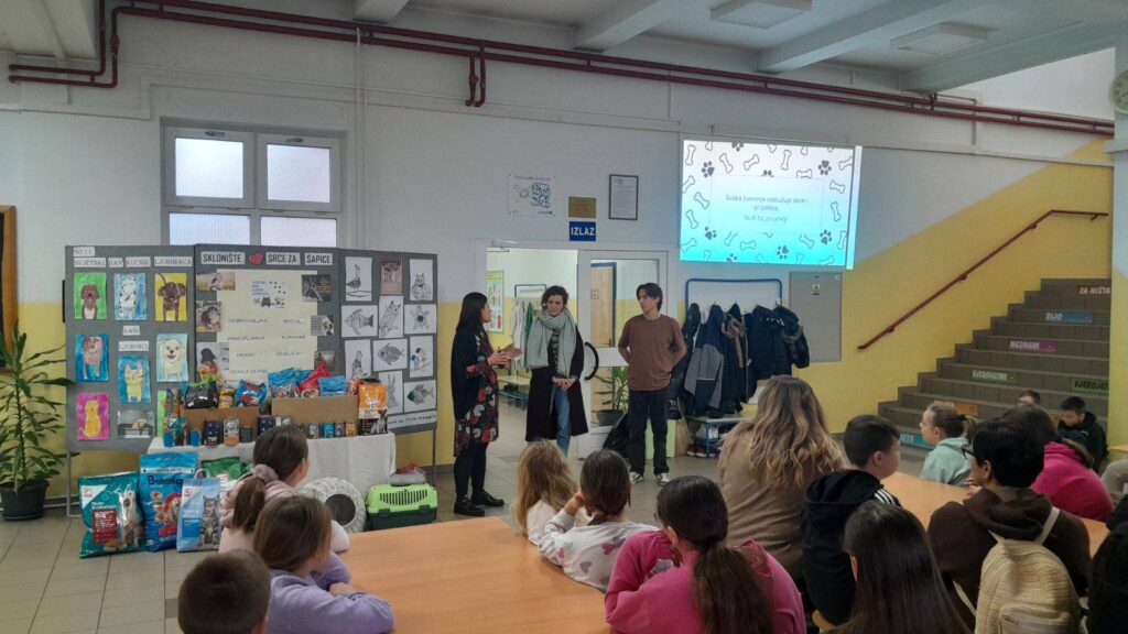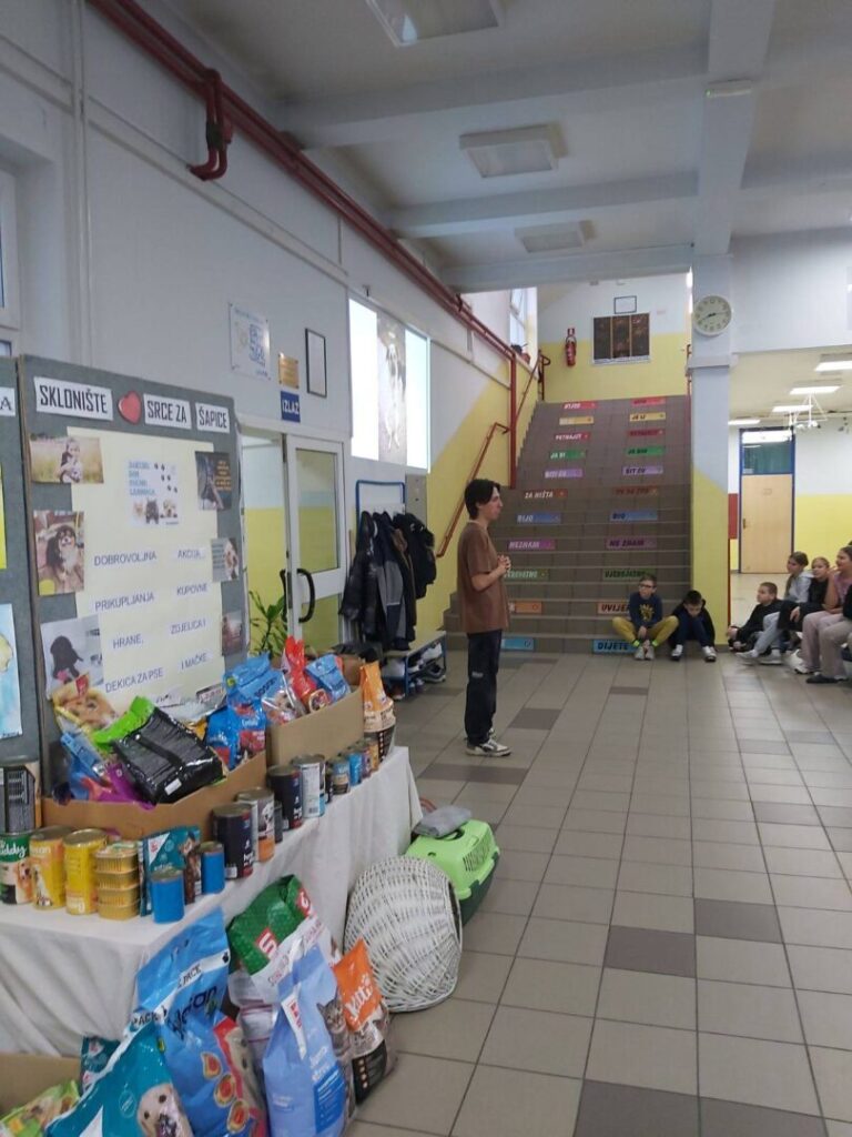 Cijeli studeni učenici naše škole zajedno sa svojim učiteljicama, učiteljima i tehničkim osobljem prikupljali su kupovnu hranu za ljubimce, igračke, zdjelice i dekice. Akcija je uspješno završena posjetom volontera skloništa “Srce za šapice”, koji su došli preuzeti prikupljenu donaciju, a susret je poslužio i kao prilika za edukaciju. Ana i Luka, volonteri skloništa, zahvalili su učenicima na velikodušnosti te održali kratko i poučno izlaganje o radu skloništa. Pojasnili su kako točno skrbe za pse i mačke, s kojim se izazovima susreću te koliko je važna zaštita životinja i odgovorno vlasništvo. Učenici su s velikim zanimanjem slušali i postavljali pitanja, pokazujući zrelost i brigu za dobrobit životinja u svojoj zajednici.